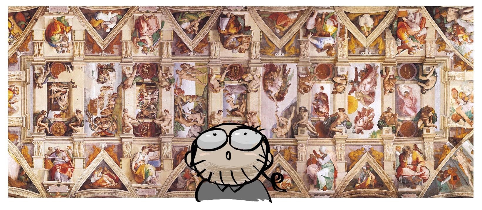 巨大ドームスクリーンが、人の手で描かれた絵画を投影できるキャンバスになる時代がやってきたのです。今なら、ミケランジェロが、システィーナ礼拝堂に描き上げた天井画のような作品を自分だって作り出せます。