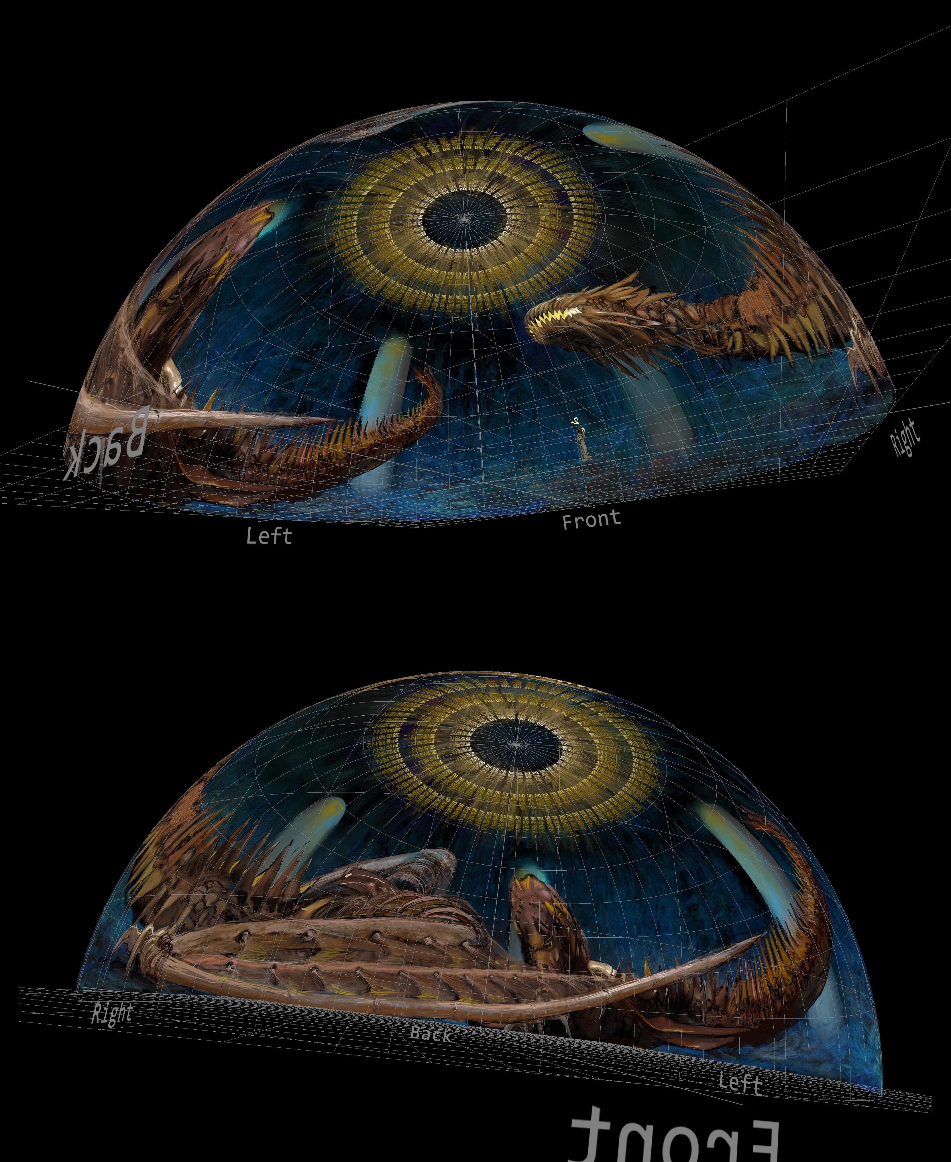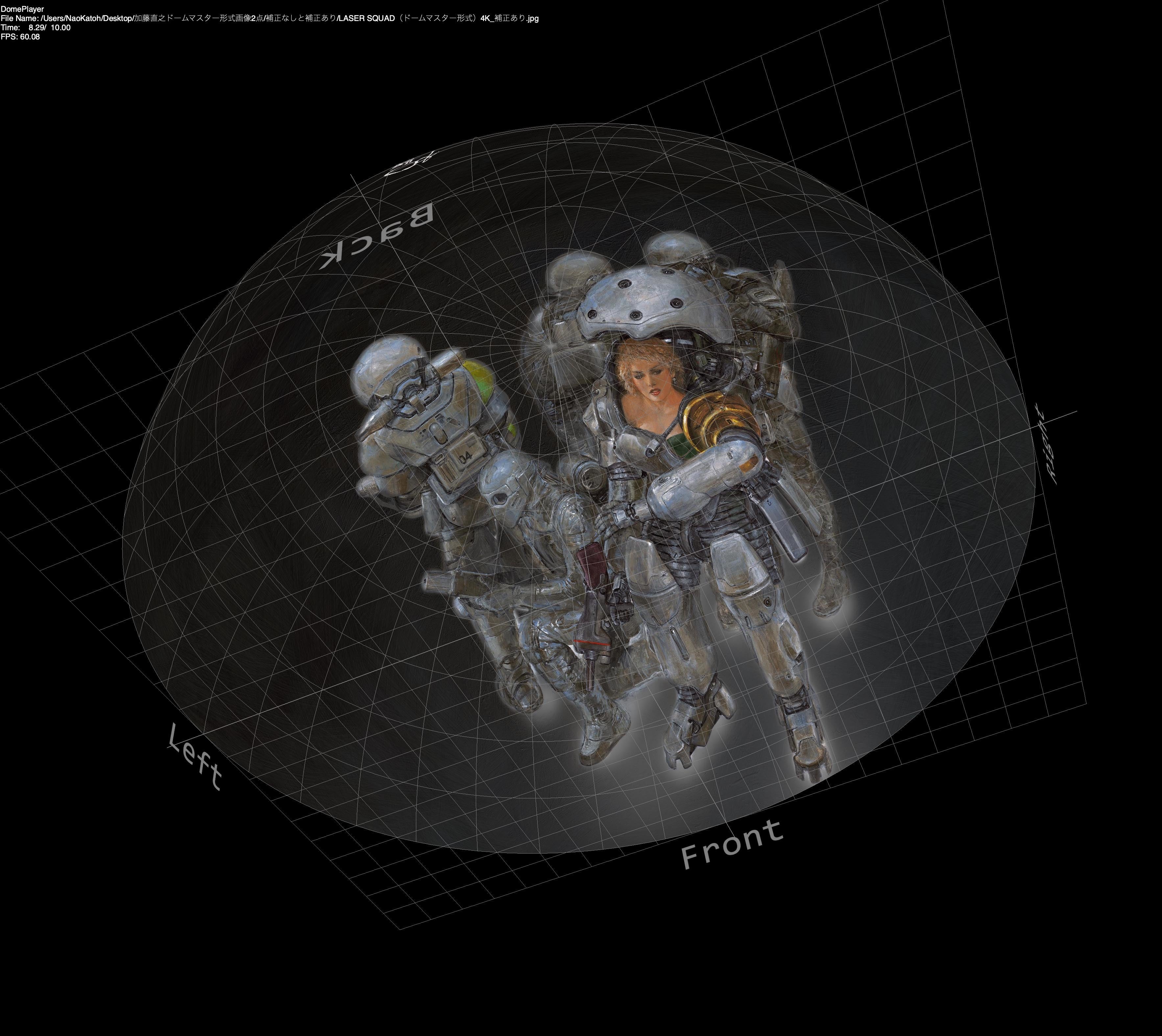 画像は作画時の参考のために作成した3DCGですが、最終的にはドームマスター形式も、イラスト(絵画)として完成させます。