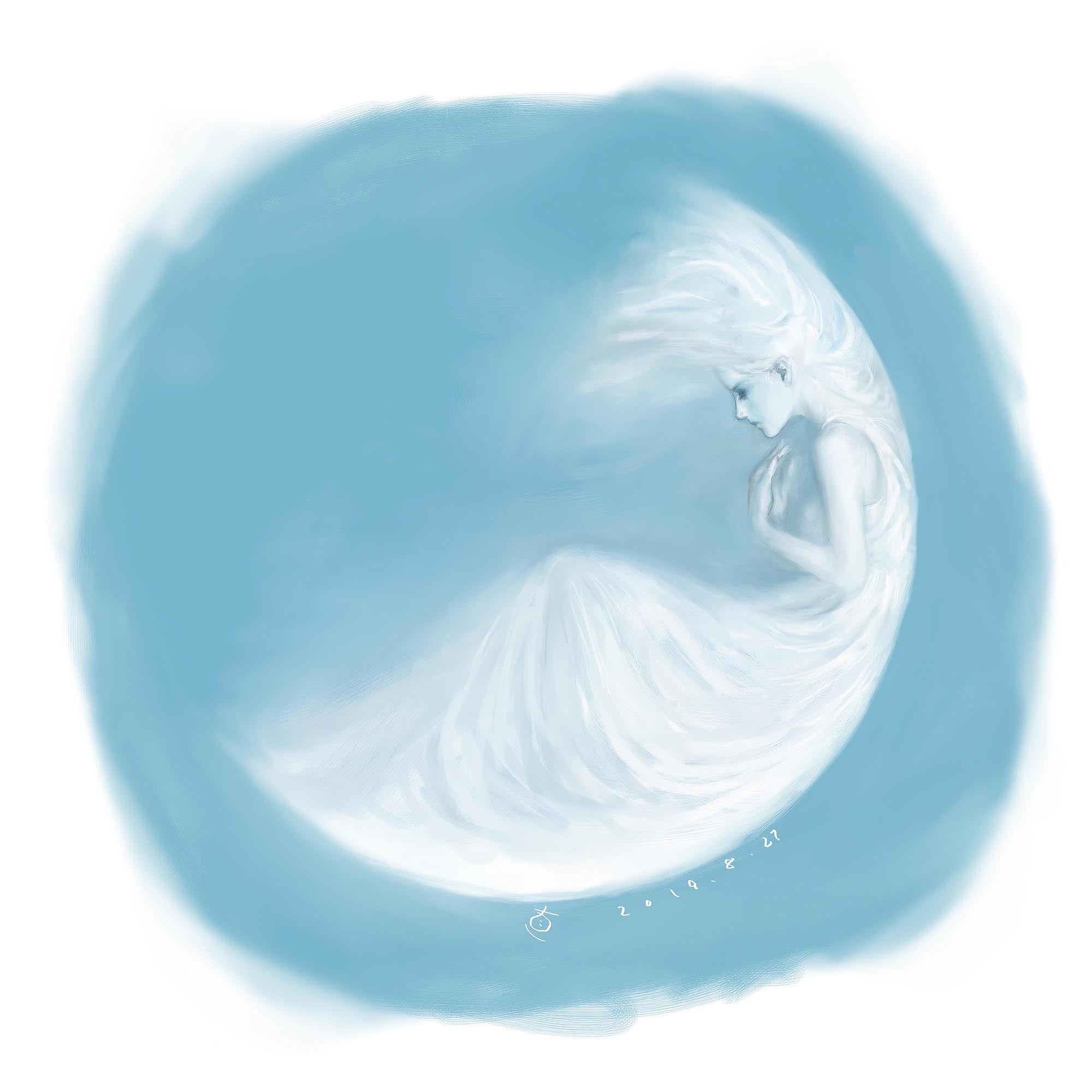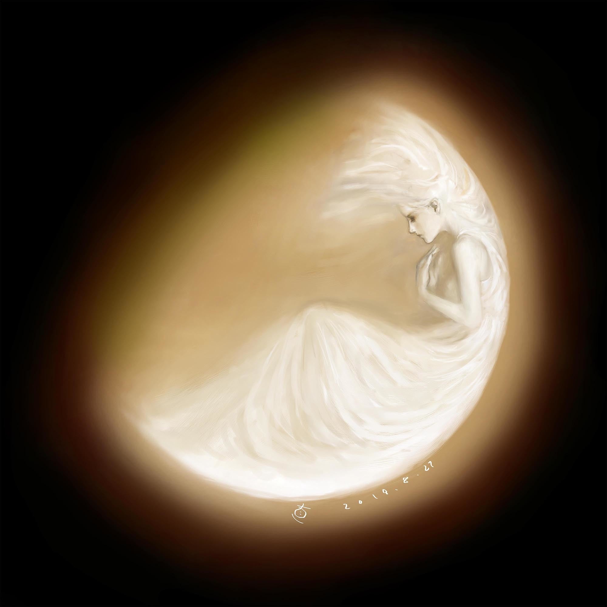 題して「昼の月、夜の月」 月の擬人化作品です。