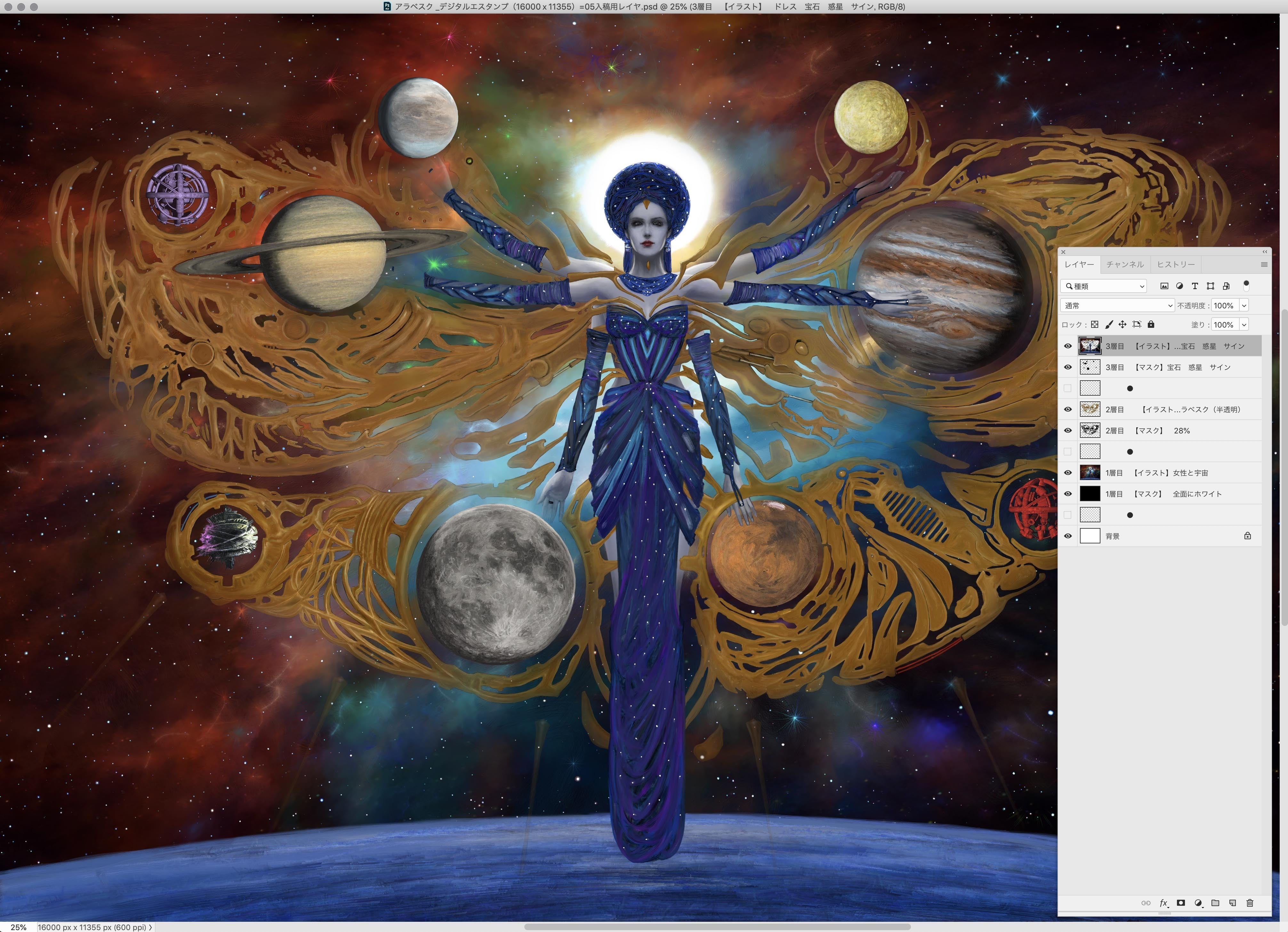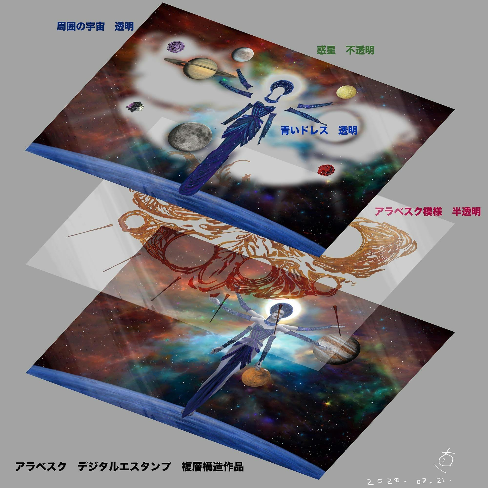 デジタルエスタンプ作品は、天井画作品『アラベスク』をそのままデジタルエスタンプ(複層構造)作品に作る予定でしたが