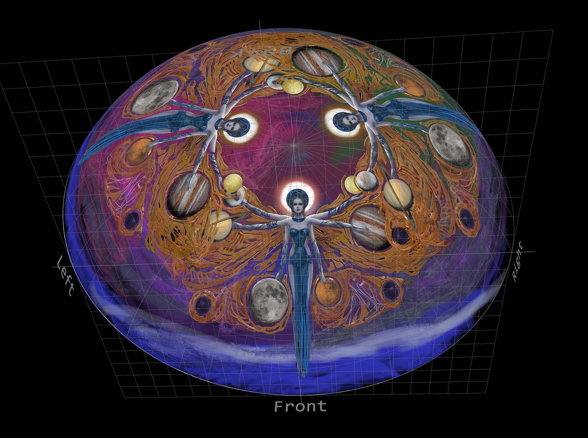 ドームマスター形式画像。中央に太陽系を配置しました。