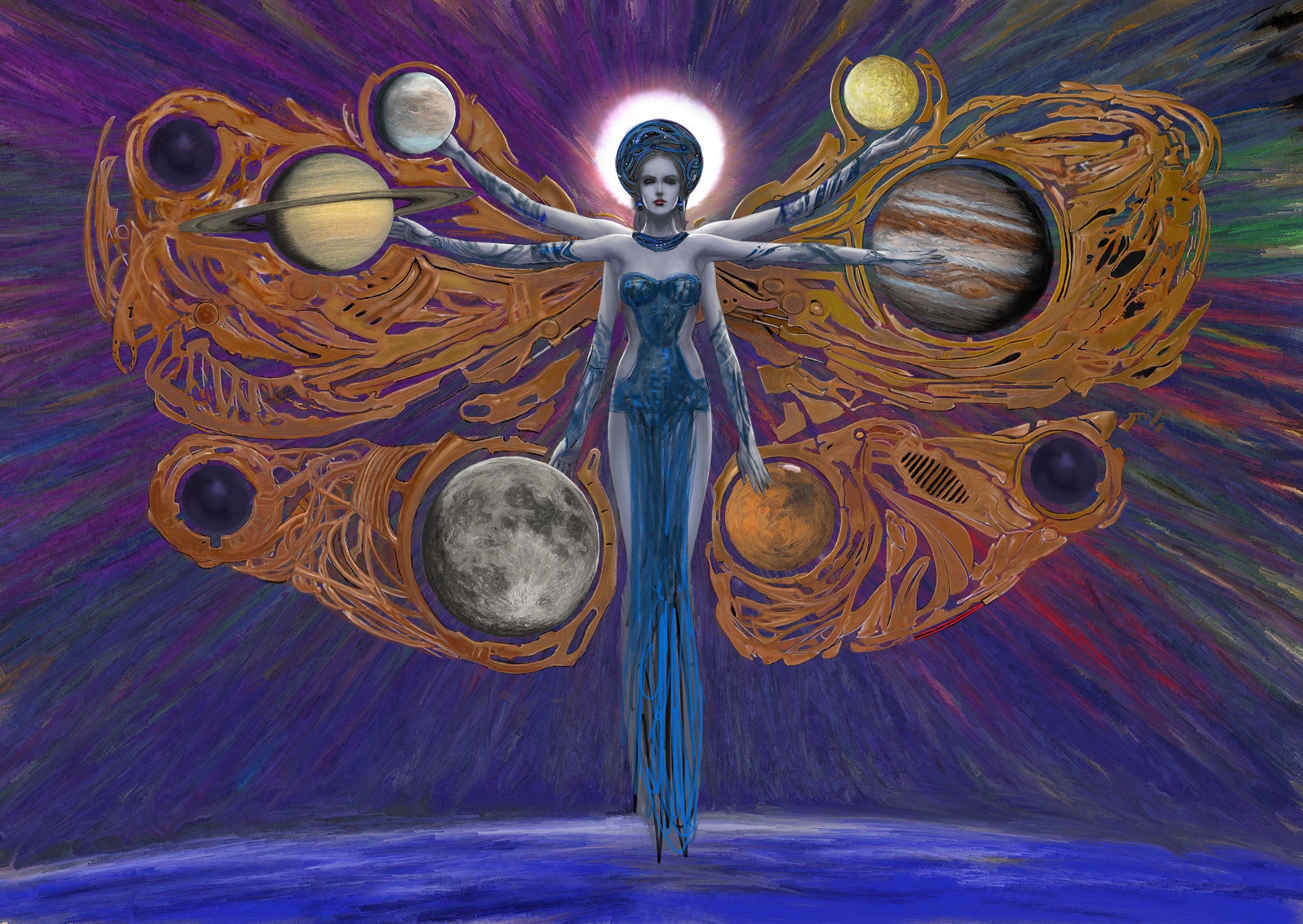 30日は、「河森正治EXPO 解態新書」収録予定の対談といろいろ用事があり、天井画の作業はあまり進めることはできませんでしたが、それでも、毎日少しずつ。