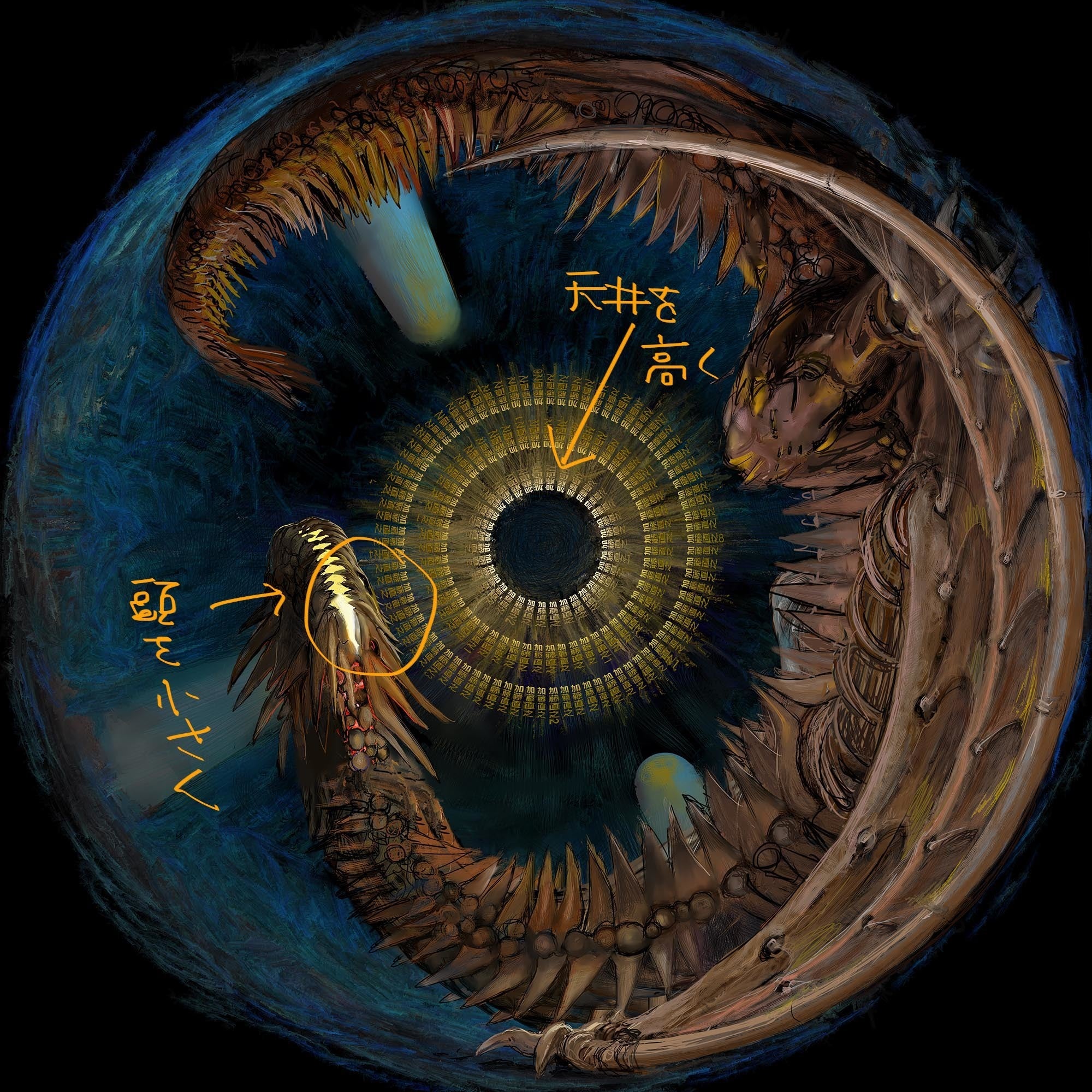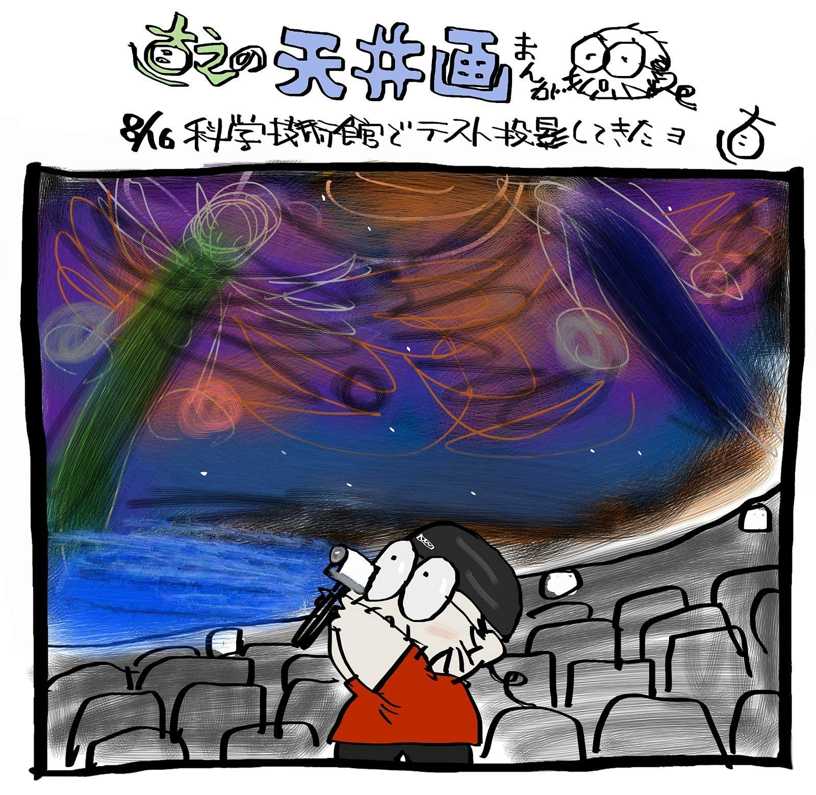 この絵はまだ下書きの段階なのですが、実際にドームに投影してみたら、細部がまだ全然完成していないことが、しっかり全部見えてしまいました。
