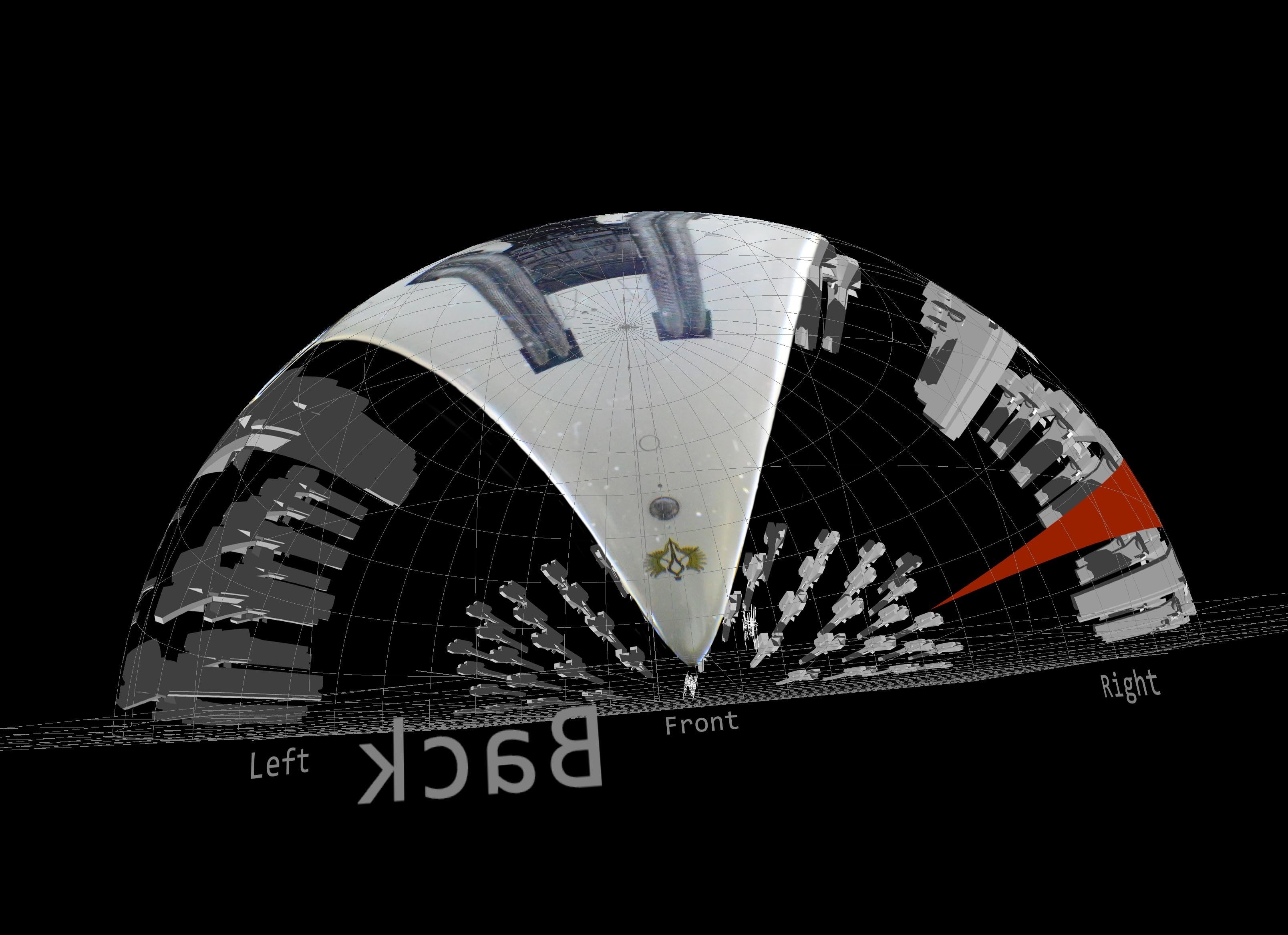 そしてもうひとつが、ブリュンヒルトの下側、細かいパーツが集まっているところに迫った構図。ブリュンヒルトのように、細かいパーツが船体の下側に集まっている船はあまり見かけません。ドーム投影にとても向いた船なのです。