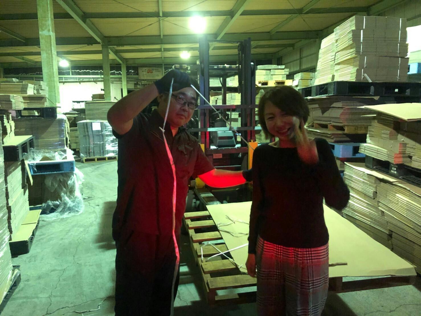 1800人分のお菓子を入れるお菓子箱を地元のダンボール業者のつかさんから協賛していただきました