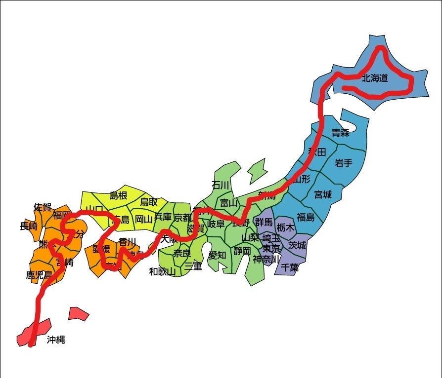 日本縦断は基本的に以下の通りで、日本海側を進むルートとなっていますが、リターンに記載の遠り、支援者様の県に訪問、またワークショップを開催できる県への訪問などによってルート変更の可能性はあります。