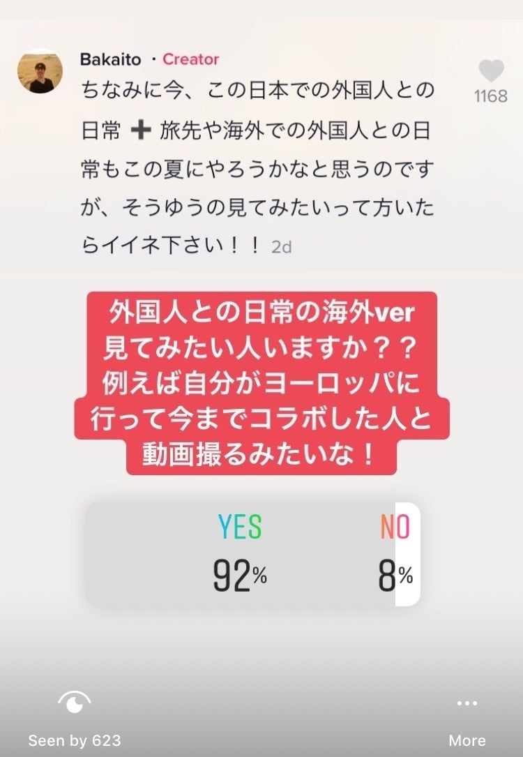 画像:TiktokとInstagramでの今回の挑戦へのアンケート。Tiktokでは1000人以上の方が,Instagramでは300人以上の方が見たいと答えてくれました。