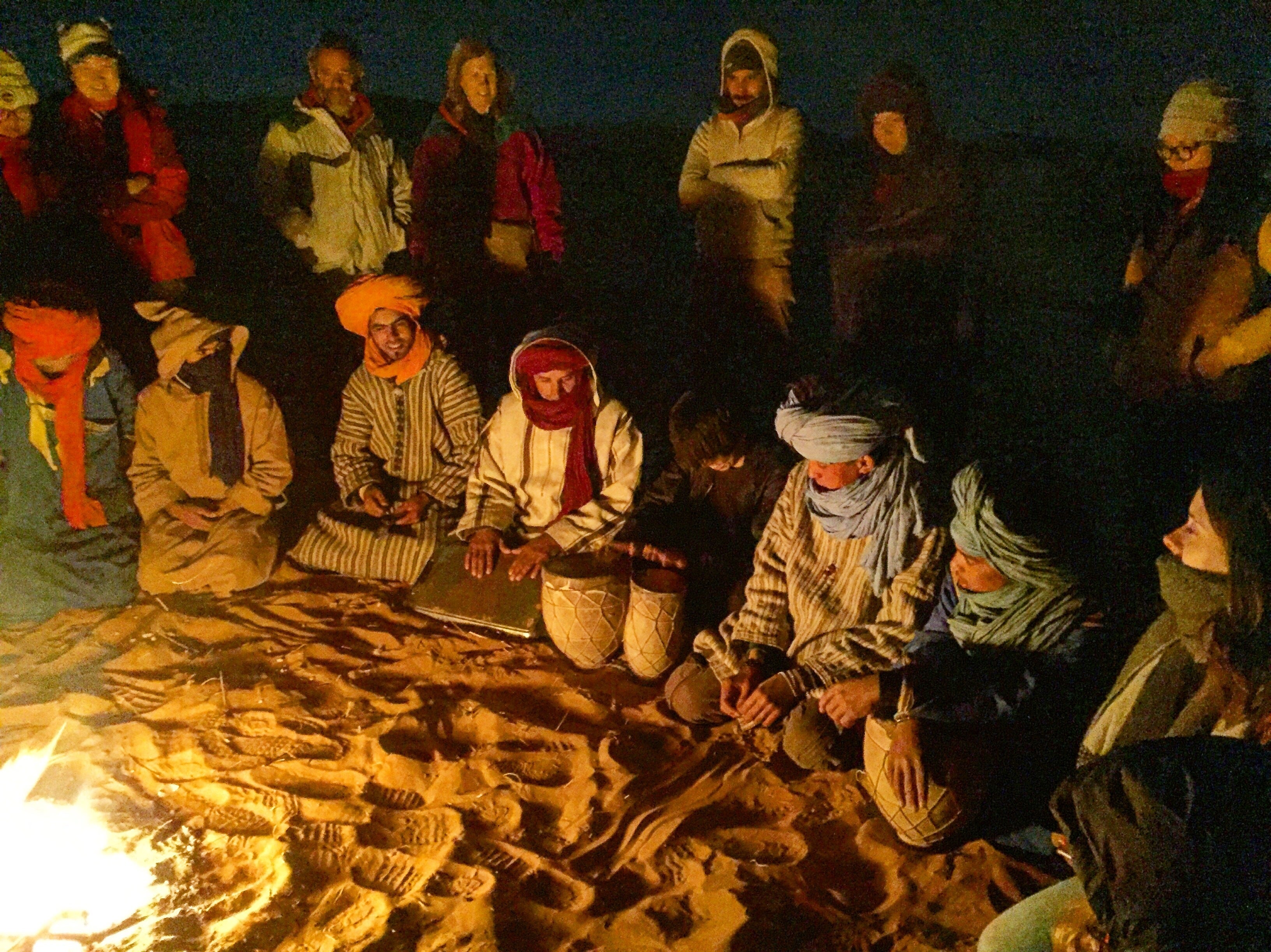 画像:サハラ砂漠で同じツアーの方と現地の民族の方に祝って頂いた23歳の誕生日。