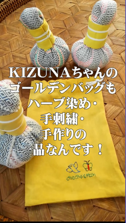 KIZUNAちゃんのゴールデンバッグもハーブ染め・手刺繍・手作りの一品なんです!