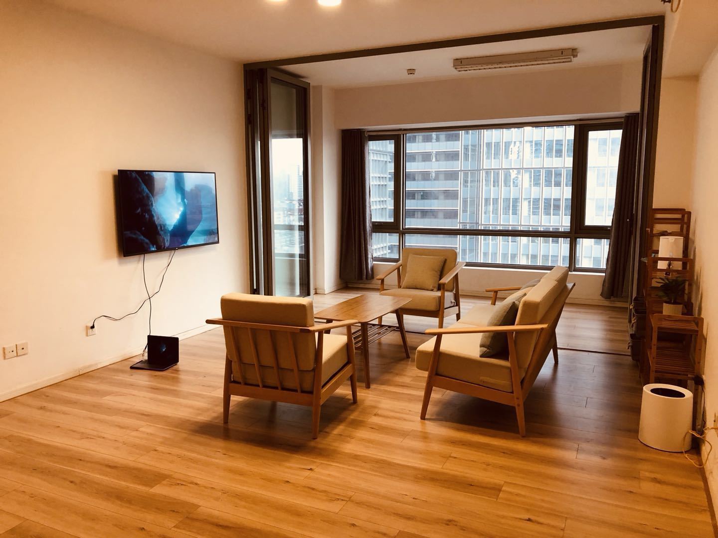 上海シェアハウスには、長期宿泊用3部屋と短期宿泊者用1部屋と広い共有スペースがあります。
