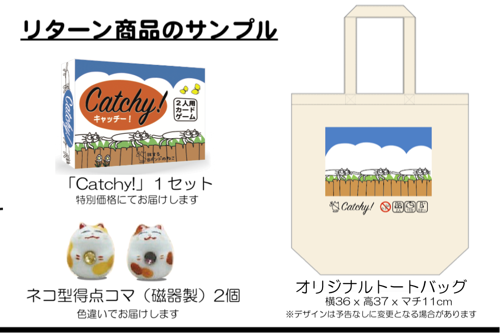 「Catchy!」1セット + スペシャルネコ型得点コマ(磁器製)2個 + オリジナルトートバッグ(ボードゲームも入るサイズです)