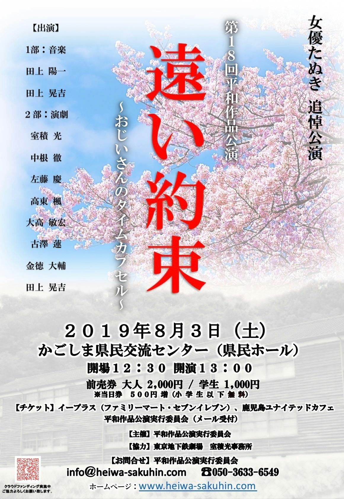 この公演のはじまりは、主宰の女優たぬき(本名:田上美佐子・東京都出身)が、鹿児島を拠点に、全国で人権や命をテーマに一人芝居を行っており、その公演を観に来られた戦争体験者の方から、長崎の原爆体験記の本を渡され「どうか芝居にして上演してもらい、多くの人に知ってもらいたい」と頼まれ、終戦の日に公演を行ったのがはじまりです。
