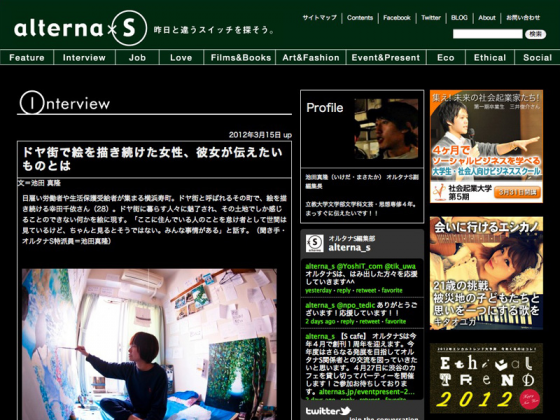 若者による社会変革を応援するソーシャルメディア「オルタナS」にて、幸田千依のインタビューを掲載いただきました!CAMPFIREでの取り組みについてもご紹介いただいています。ぜひご覧ください。Interview:ドヤ街で絵を描き続けた女性、彼女が伝えたいものとは