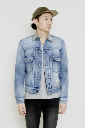 全体の色落ち具合が、とてもいい感じで、亀田縞の襟とパッチワークが良いアクセントになってます。