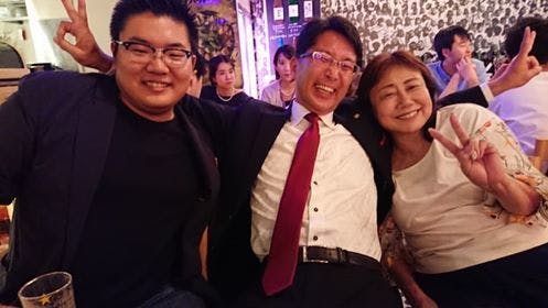 (左:応援隊副リーダー大久保・中央:応援隊リーダー板野・右:神戸ALIVE組織委員長小城さん)