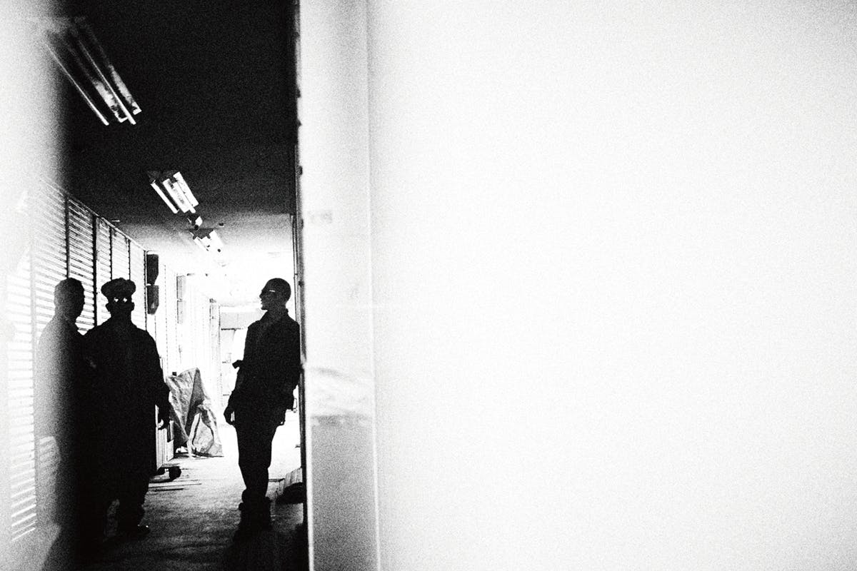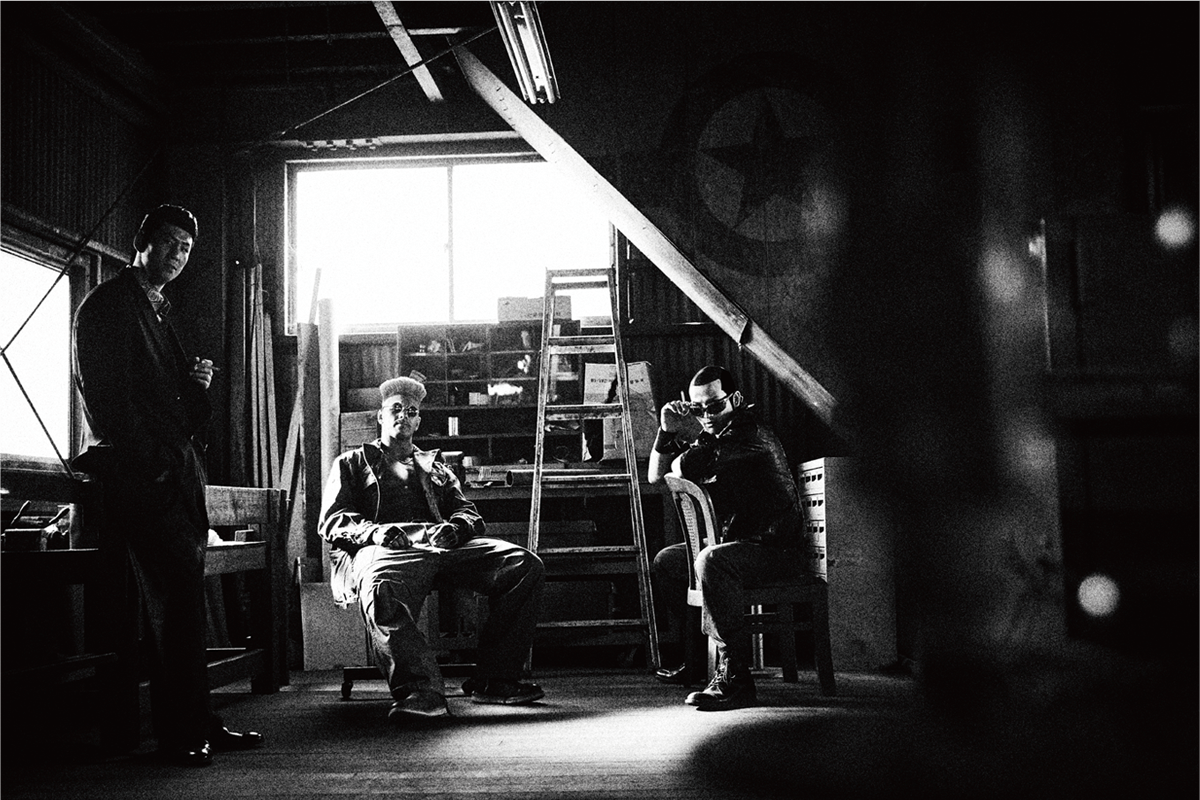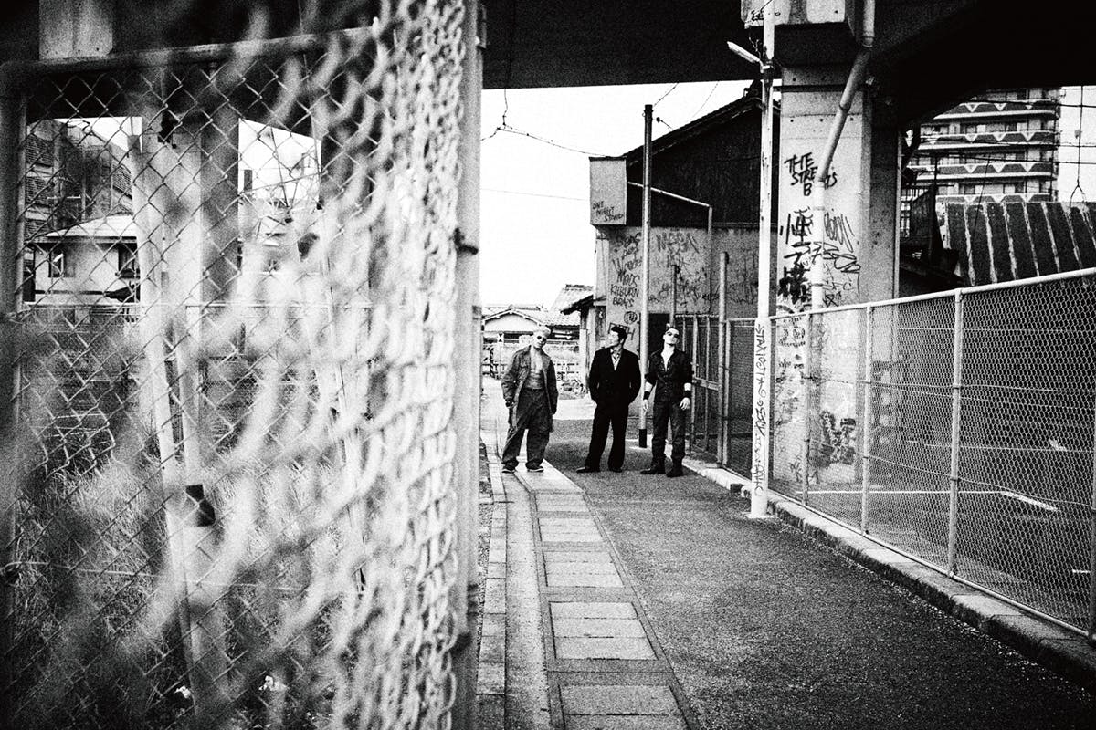 三人の集合写真がオーソドックスに収められている。コントラストが効いた一枚。