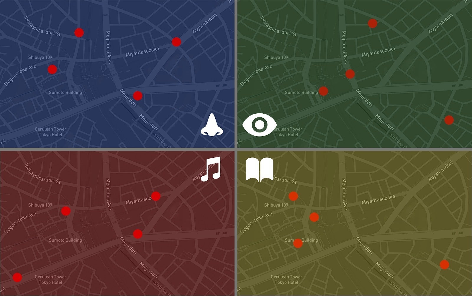 感性と都市を結びつけ街への視点を多様化させることを目指し、そんなことを考え、好きな音楽に基づいて場所を探せる地図を作り始めました。