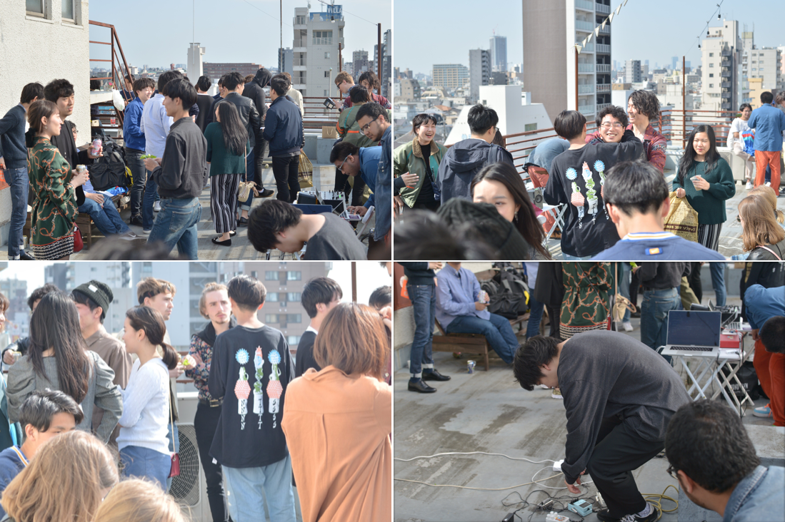 今年4月に品川の屋上を借りて実験的に音楽イベントを開催しました。クラスターもバックグラウンドも関係なく、 ムードとリズムに基づいて人の集う素敵な空間となりました。