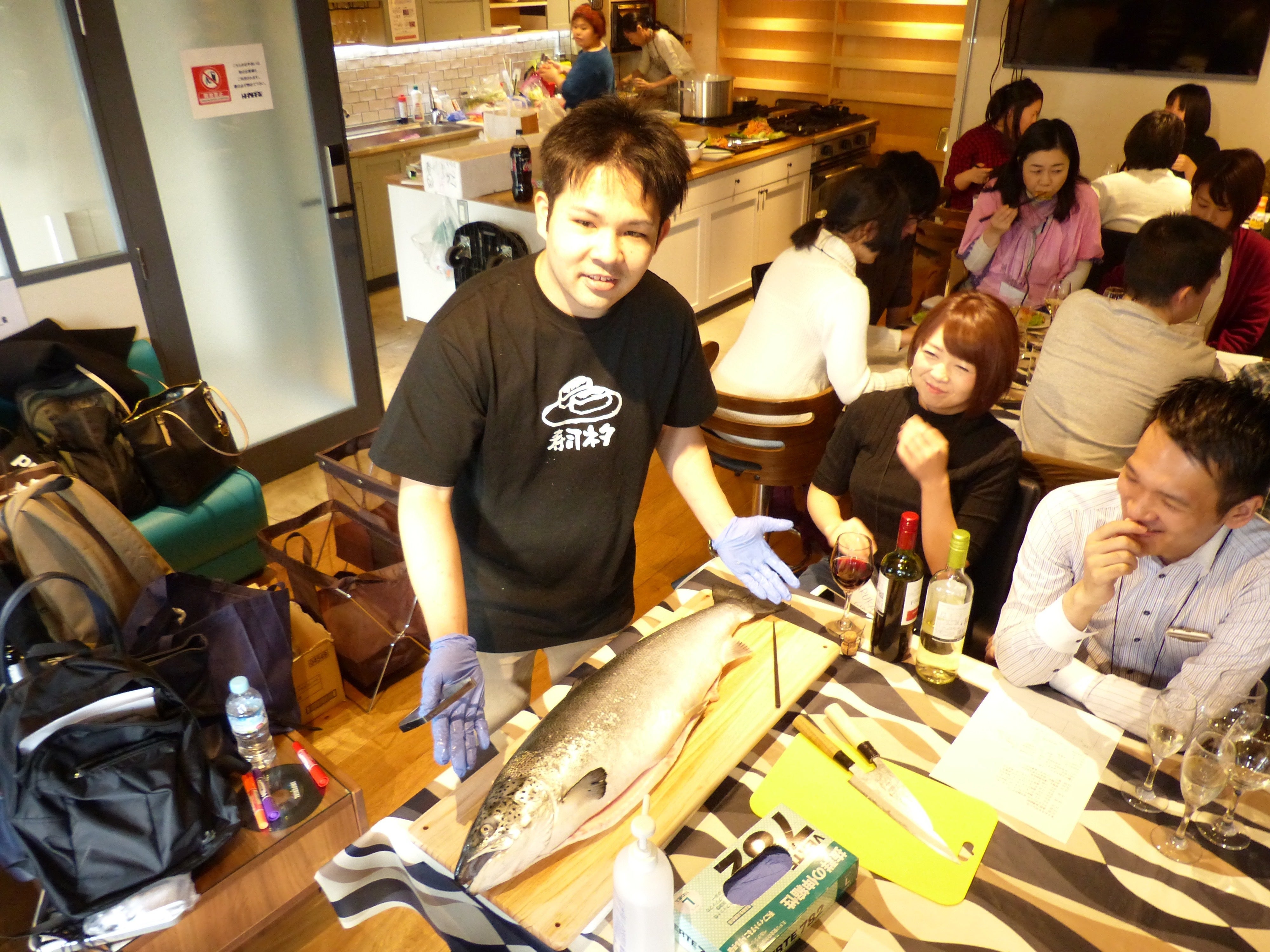 第一歩として世界・国内から厳選した多数の生のブランドサーモンを使用するクリス"マス"パーティを12月に都内で開催しますので、この場でサーモン解体ショーを披露させて頂きます!