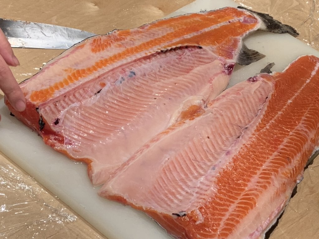 国産ブランドニジマスの【紅富士】を柴崎養鱒場より丸々2尾直送して頂き、