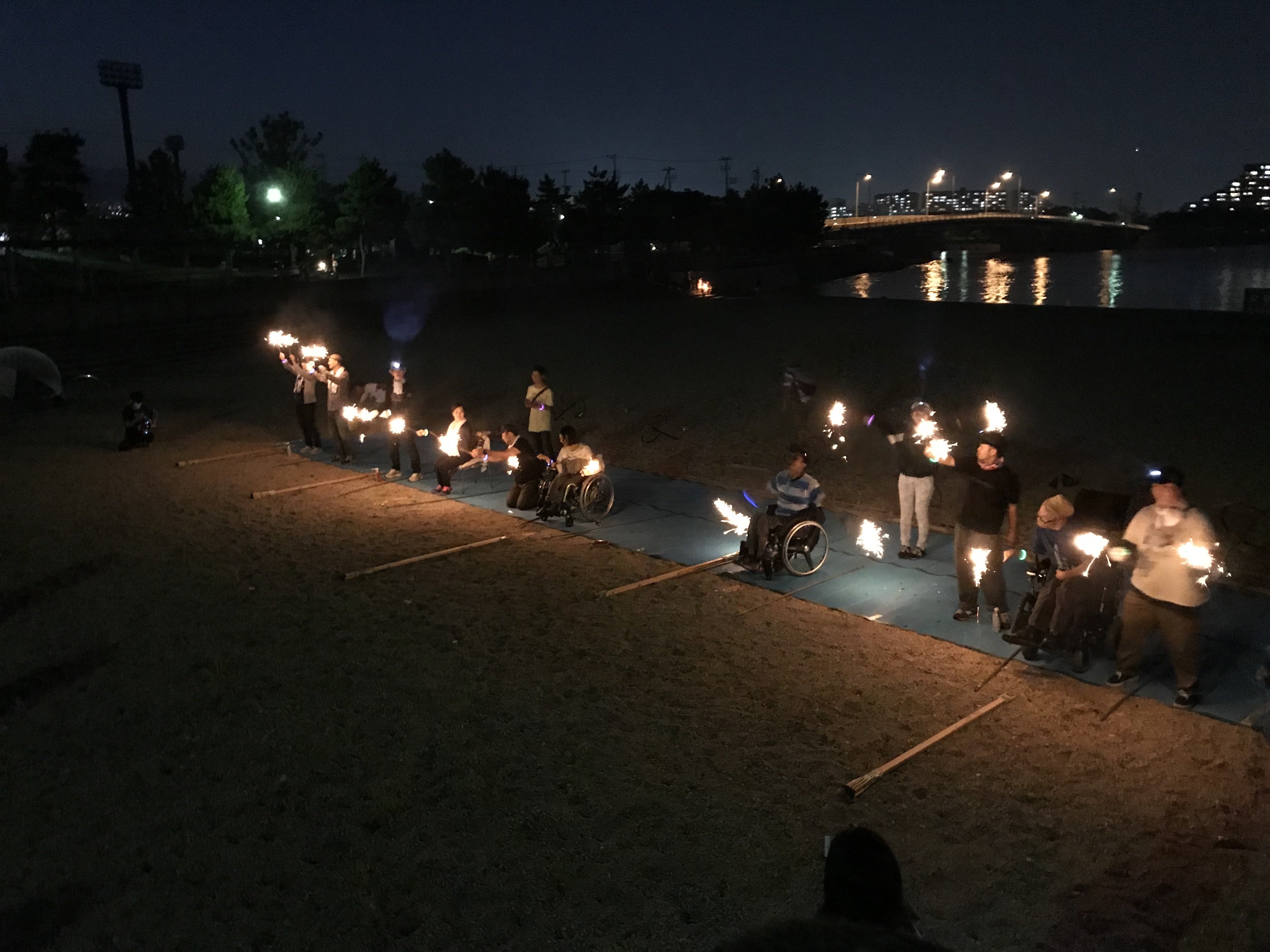 前述の「ミーツ・ザ・福祉」のイベントに参加して、さらにその想いを強くしていたときに、「大人達が作る子ども達への花火大会」を見に行きました。火の粉を浴びながら花火を打ち上げる大人達のかっこいい姿を、子ども達に見てもらうというイベントです。花火師にスポットライトを当てるその花火大会を見たときに、これを障がいのある人と一緒にやりたい!と思ったのです。