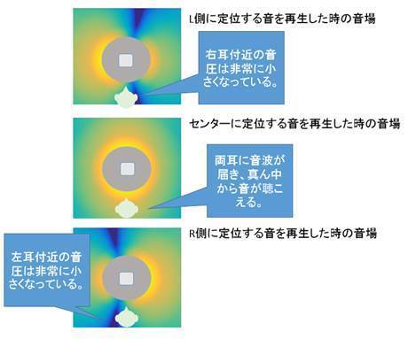 音源に含まれる左右の広がりに関わる成分をリアルタイムに解析することと、理想的な視聴環境で知覚される音を参考に、物理的な音の放射特性を考慮して、必要な音の成分を的確に両耳に届ける制御技術を組み合わせることで、今までにない臨場感のある再生が可能となりました。