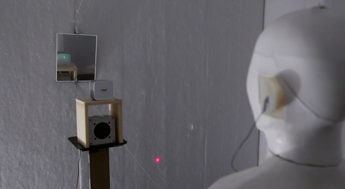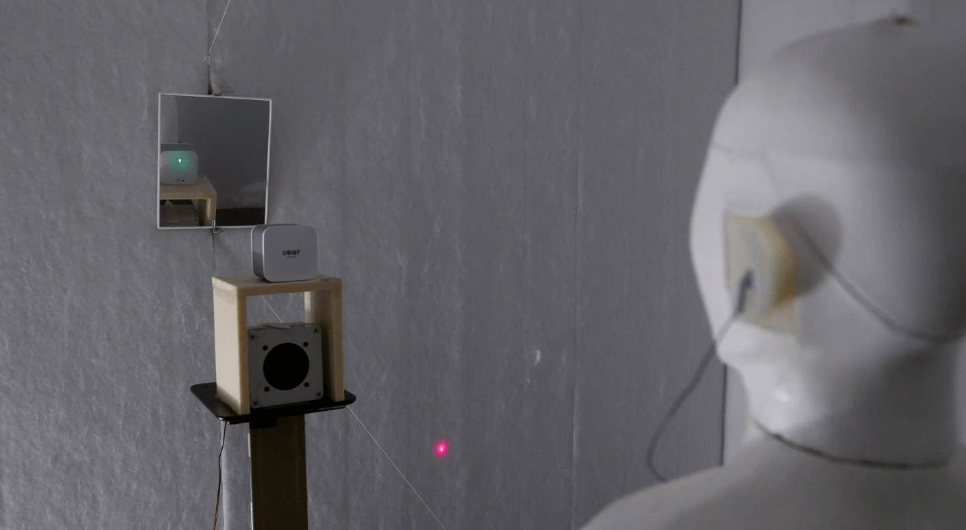 スピーカが横を向いた独特な形状により、優れたクロストークキャンセル性能を実現するとともに、筐体の不要振動を打ち消すことに成功しました。様々な方向から到達する音の特徴を高度な信号処理により耳元に直接表現します。ワンボックスの筐体からは、想像のできない音場表現が可能です。