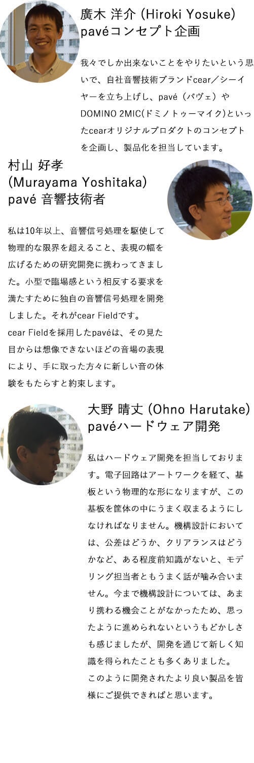 開発に関わった様々な人の色々な思い入れが詰まったpavéが、一人でも多くの方に音による新たな体験・感動・驚きをお届けできれば幸いです。