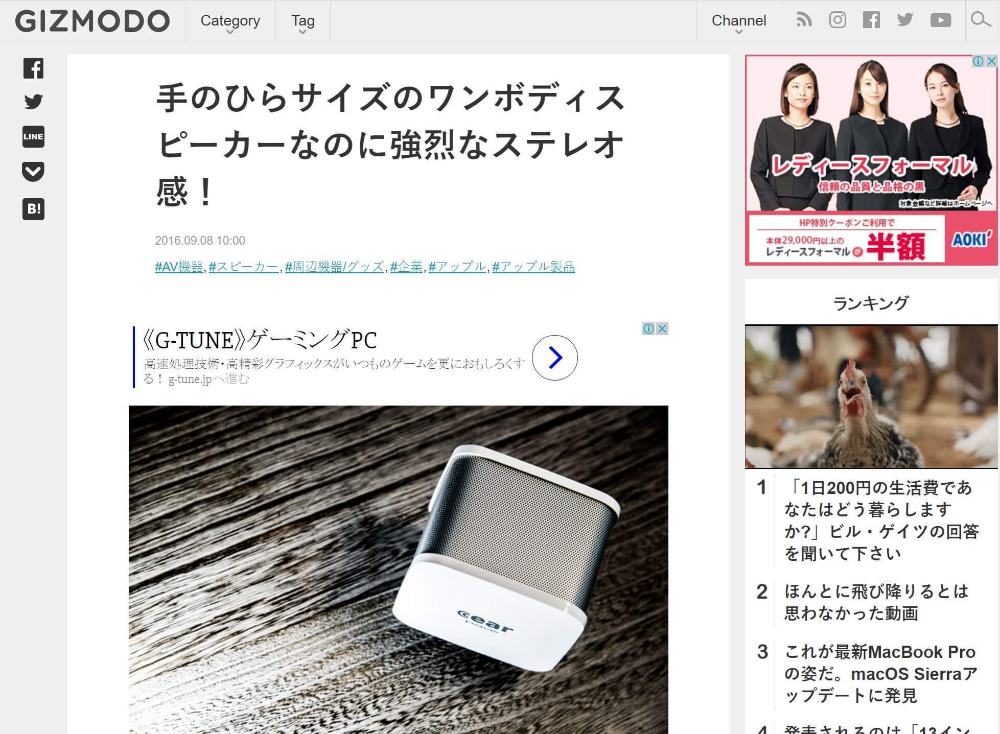 2016.09.08 GIZMODO JAPAN様に取り上げて頂きました。