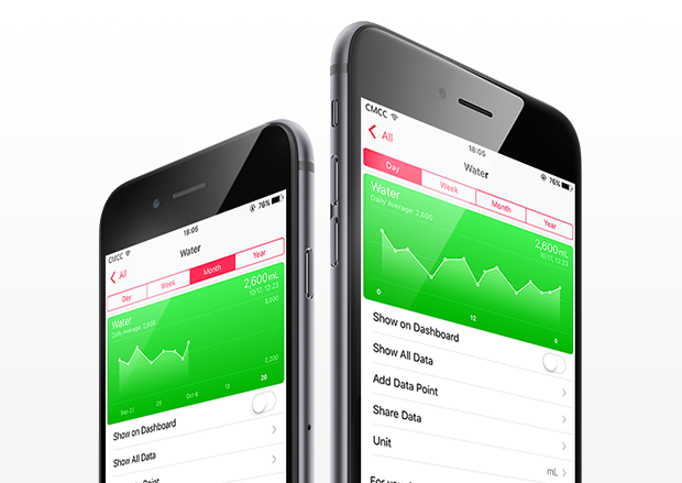 iOSのヘルスケアアプリだけでなく、FitbitやJowbone UPといったライフログアプリとの連携も可能です。