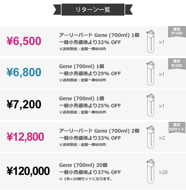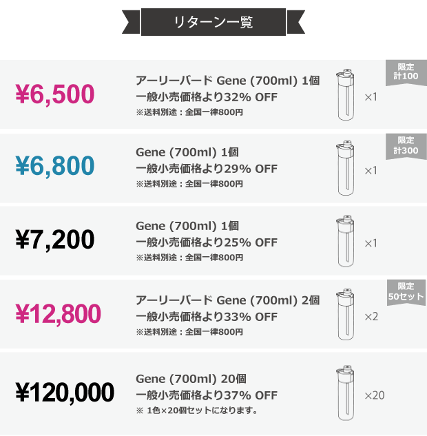 ※ Indiegogoの価格やリターン構成は為替その他の関係で異なります。