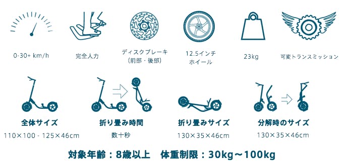 コンパクトなデザインと素早く動かせれるハンドルによって障害物の避けたり、人混みの中でも安全に移動できます。また数秒で、43×33 cmの大きさに折り畳むことが可能です。
