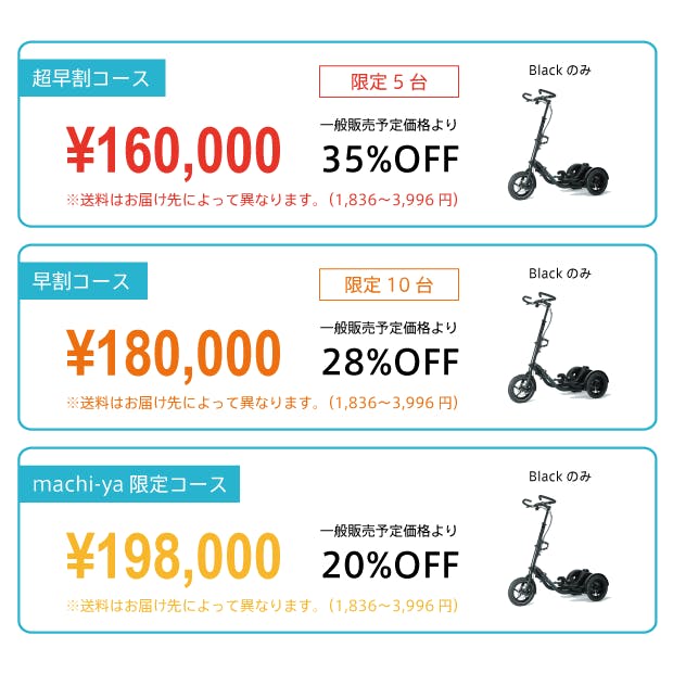 安い製品ではありませんが、身体に負担が少ない優れたトレーニングモビリティを是非この機会にお試しください!