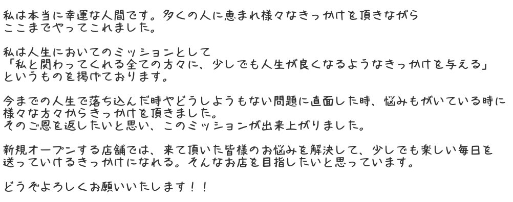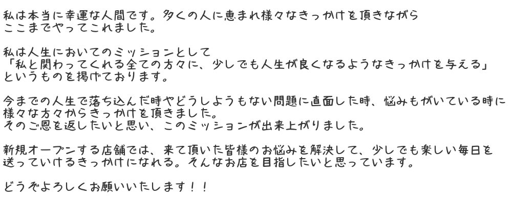 営業時間(仮):10:00〜20:00 最終受付時間19:00