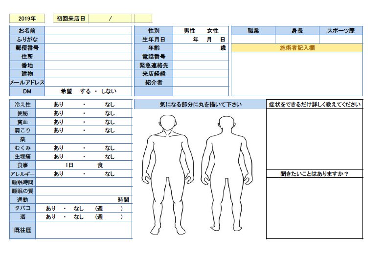 睡眠の質や、疲労感、体のバランス、既往歴など様々な観点からチェックしていきます。