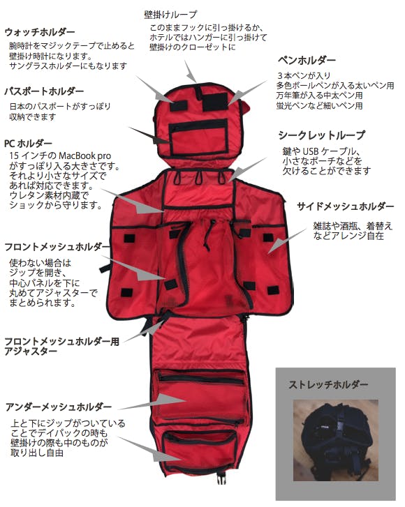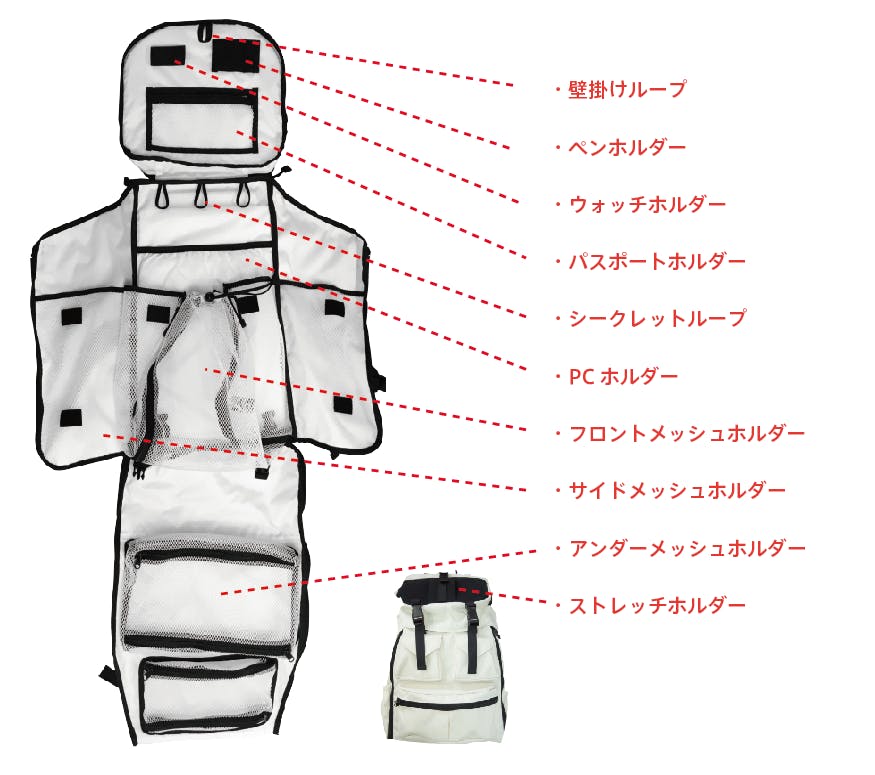 しかし、CLOSET BAGの特徴はこれだけではありません。旅先での悩みを解決する機能がいくつも隠されています。