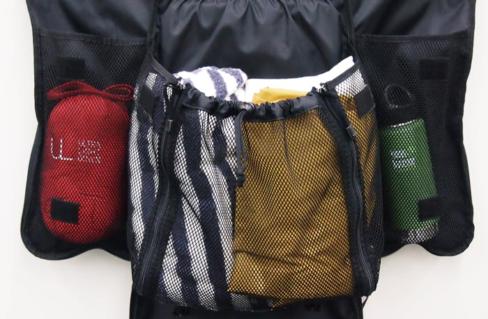 CLOSET BAGの特徴は、なんと言ってもクローゼットのように大容量の荷物が収納でき、整理したまま中身を取り出すことができる構造です。