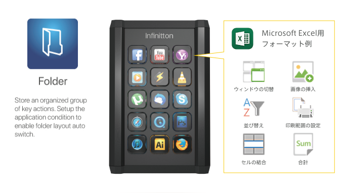 上記の事例のようにMicrosoft® office®やAdobe Photoshop®やスピーディーな反応が求められる各種ゲームなどで自分だけのレイアウト作れば効率が一気にアップ!