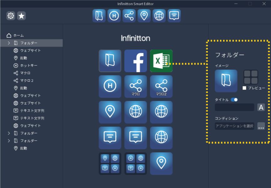 キーの並び替えや、アイコンの変更など、エディタ上で自由にレイアウトを変更することができます。