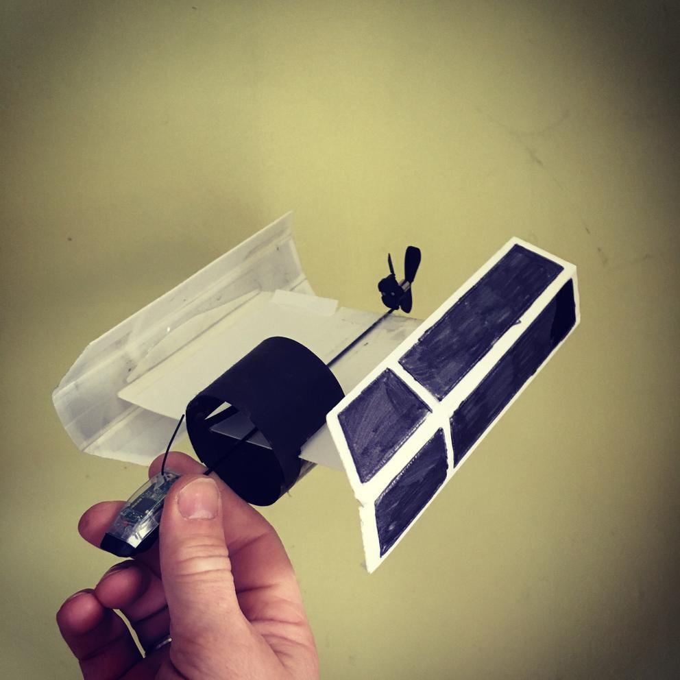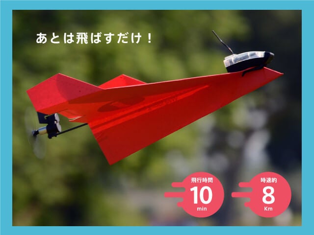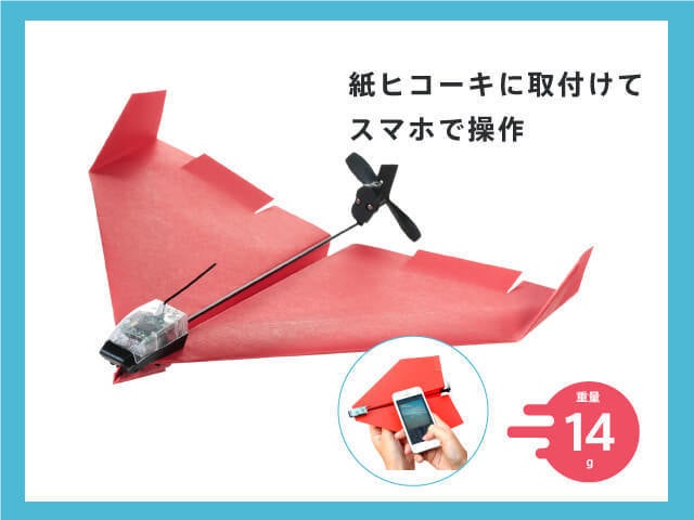 FPVのようにライブストリーミングカメラはありませんが、よりコンパクトで軽いモジュールを使ってさっと紙飛行機をコントロール可能な機体へと変化させます。