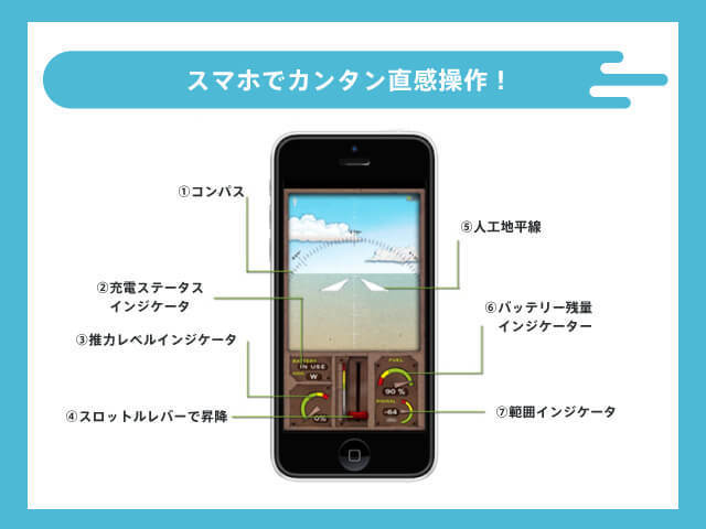 Parrot® 社との協力によって、世界でも最高クラスのアメイジングなライブストリーミング技術を作り上げ、通信距離約100m前後のスリルと爽快感を得ることができる飛行を楽しめます。
