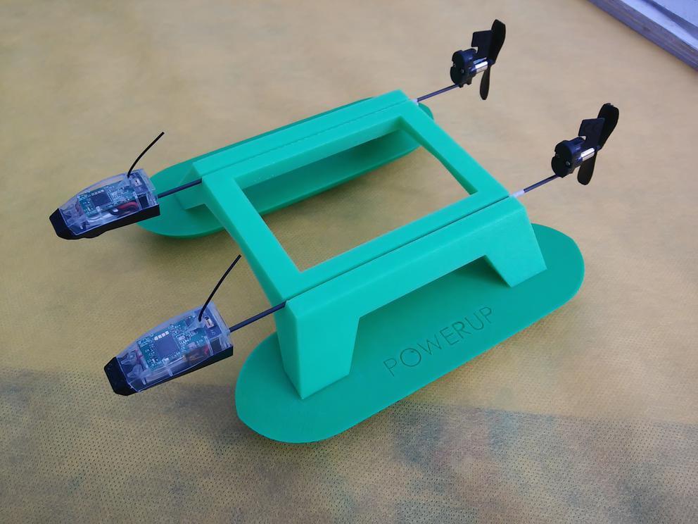 そしてその創造性は飛行機だけに留まりません。PowerUp3.0を2機使ったホバークラフトなんてものも作ることが可能です。