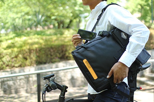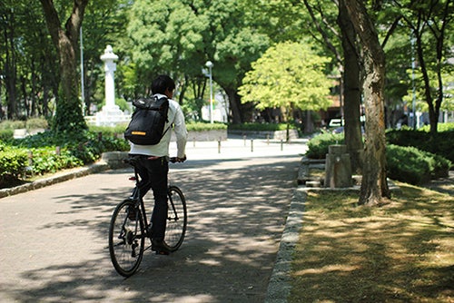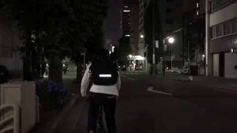 彼女が自転車で帰宅途中にいつも危ないと思いながら通っていた経験を活かし、背面が点灯するバッグを考案したのです。その結果、確実にヒヤッとする回数が減少したことで、生産に至りました。自動車も自転車も多い日本で、ぜひ使って頂きたいブランドです。