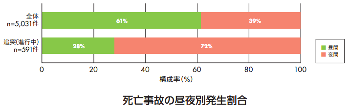 追突(進行中)事故の 72%が「夜間」に発生しています。