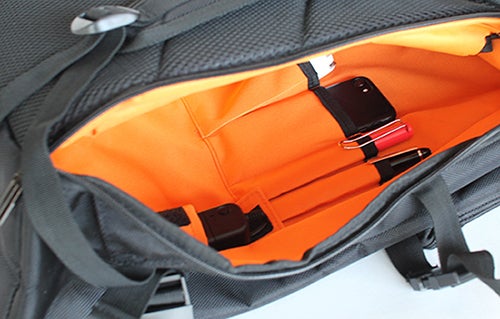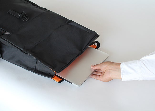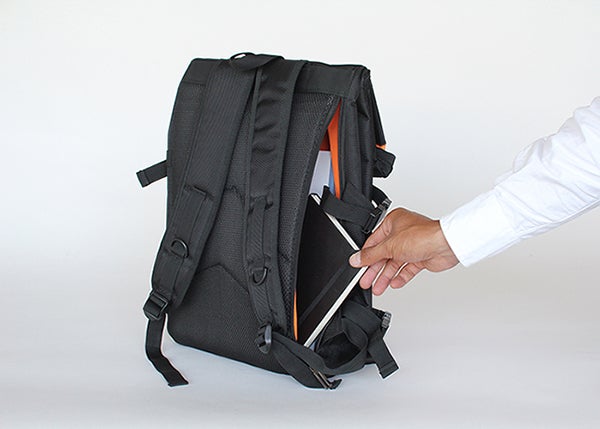 上からも横からも荷物を取り出せます。ロールトップからは大きな荷物を。サイドファスナーからは、すぐに取り出せるものを。使い方は自由です。