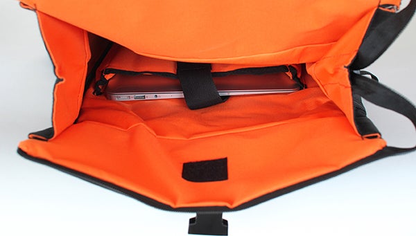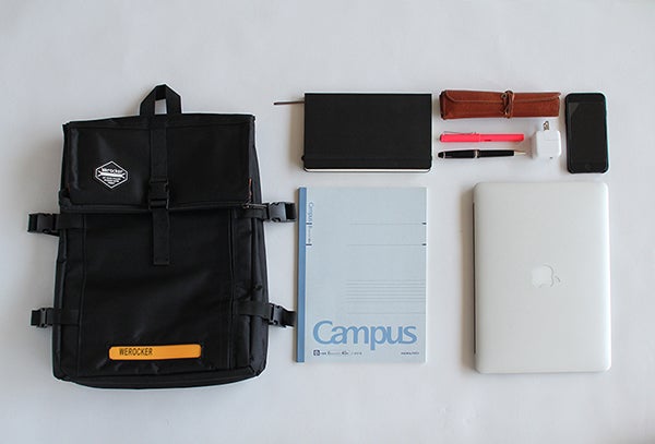ビジネスに必要なパソコン(※画像PCは13 inch)やA4ノート、手帳なら難なく入れられます。また、小物を整理できるポケットが付いています。