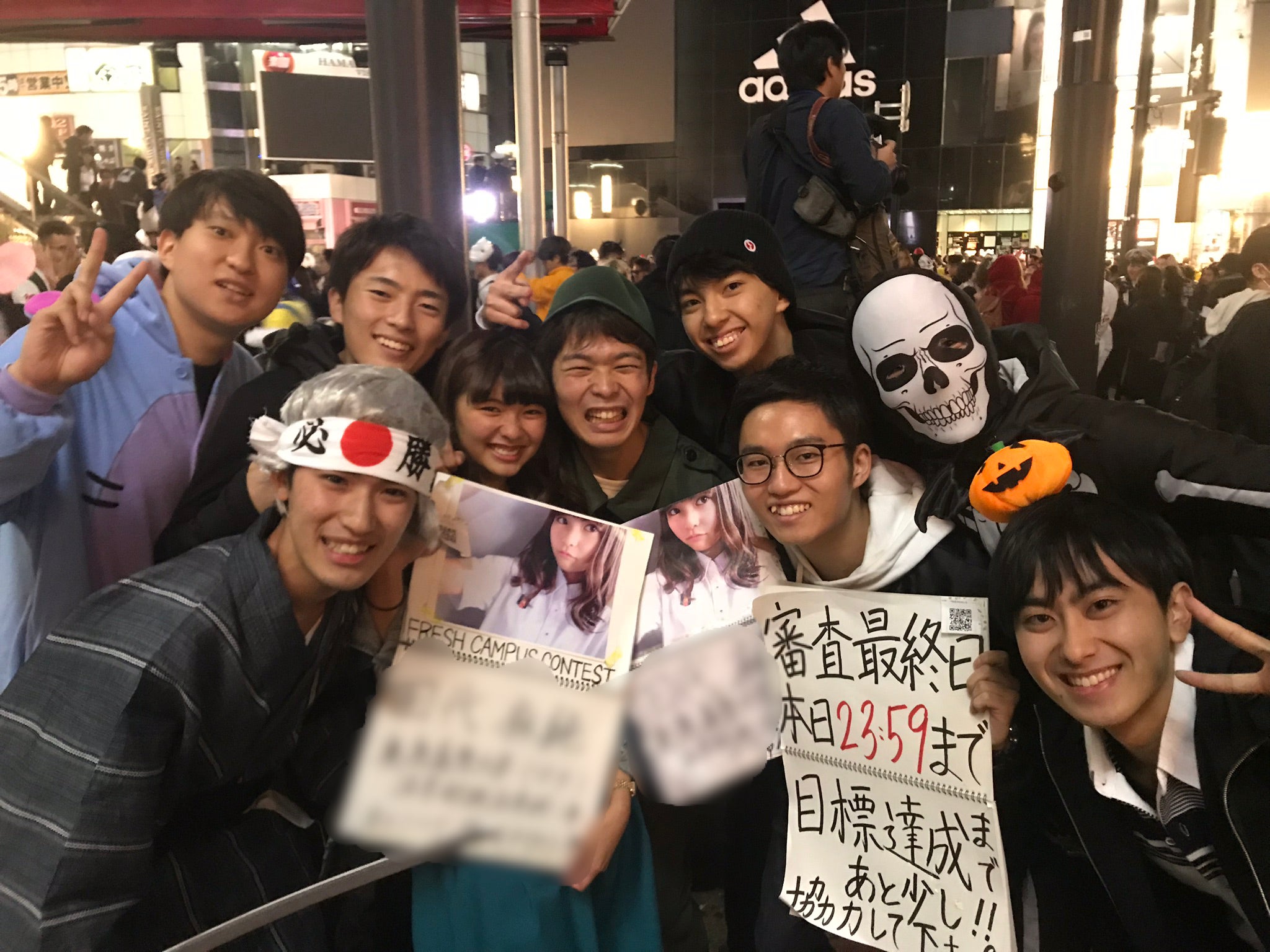 ハロウィンの渋谷で全国の新入生が競ったミスコンに出ていた友達を応援して、みんなで15人だけのファイナリストの舞台を勝ち取ったり
