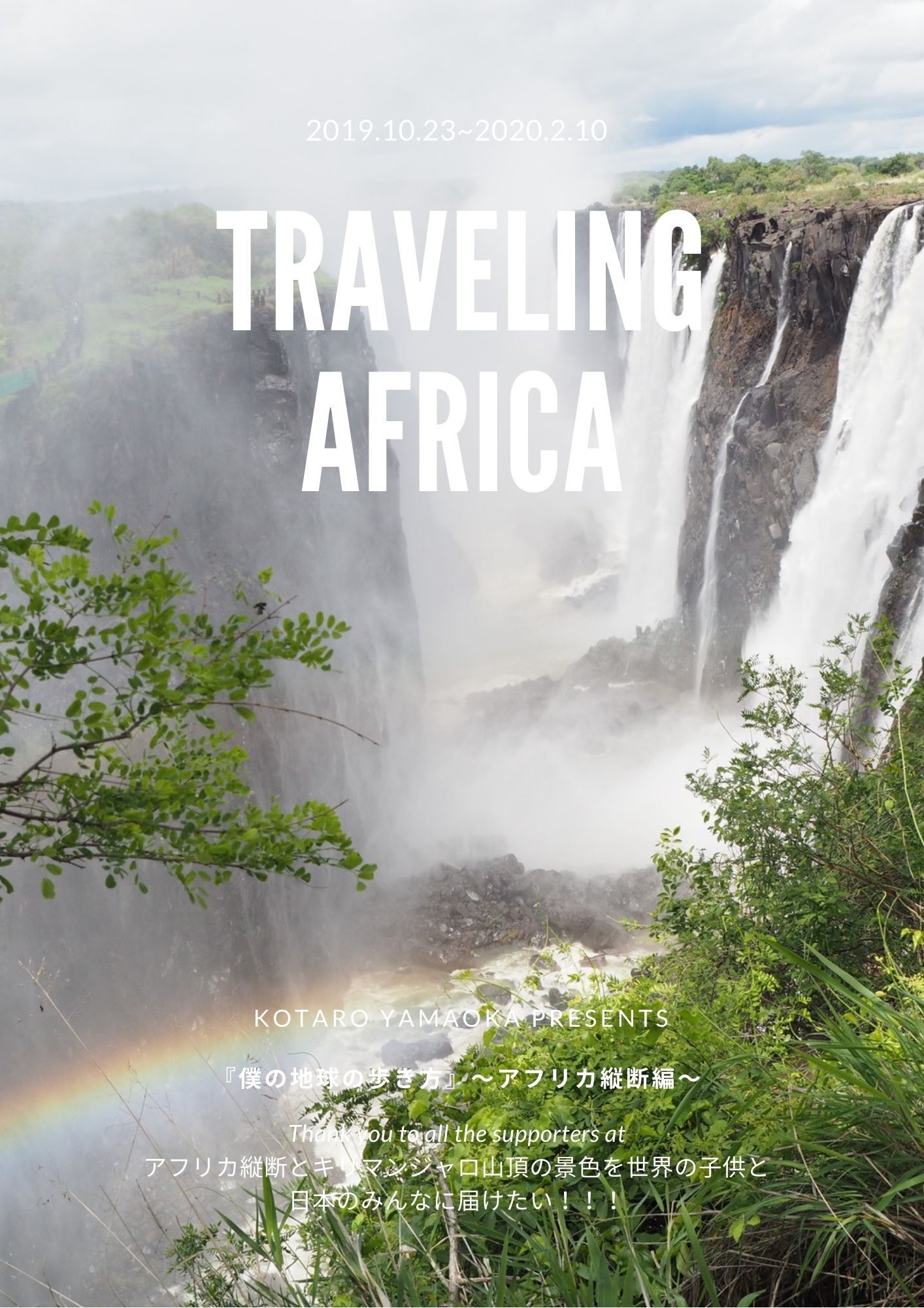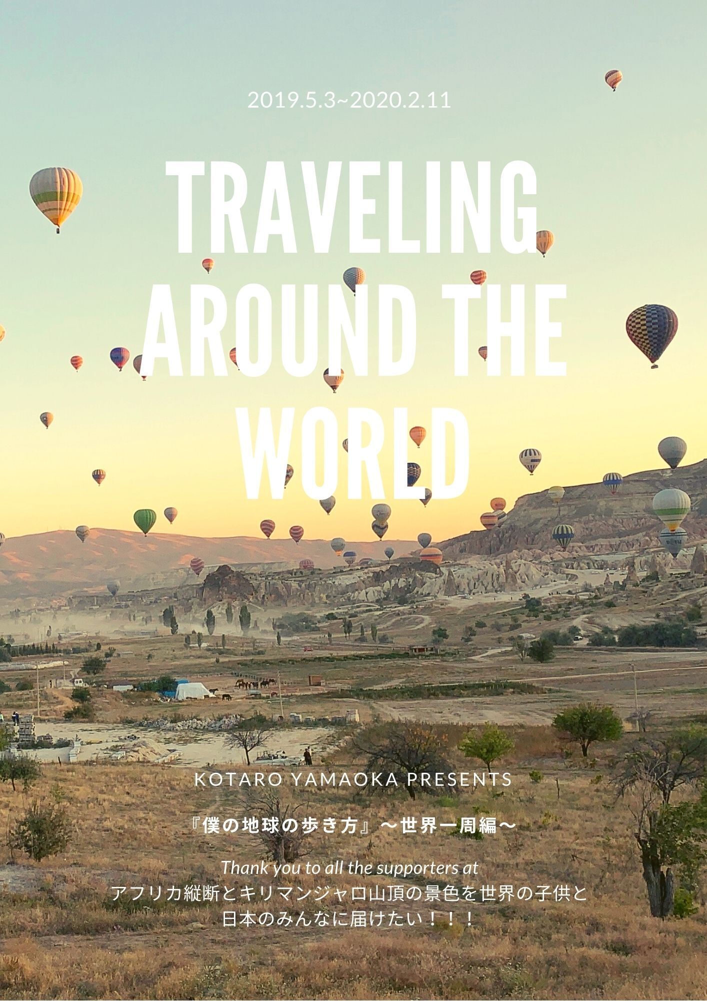 2021/02/16 23:00支援者の皆さまへ特に『僕の地球の歩き方〜アフリカ縦断編〜』リターンを選択になった皆さまへご無沙汰しております。山岡光太郎です。本当に、本当にお待たせしましたことを深くお詫び申し上げます。『僕の地球の歩き方〜アフリカ縦断編〜』完成致しました!!!以下概要です。分量:78ページ(『世界一周編』をお持ちの皆様は「#0 はじめに ご挨拶」「#1 出国前」が共通しております。#2出国後 アフリカ縦断旅 及び #3 さいごに をお楽しみ下さい。)内容:アフリカ縦断旅の記録,出発前の準備、旅の前後の私の変化明日2月17日の朝8:00に対象者にy.kotaro0123@gmail.comより送付致しますので楽しみにお待ちください。※ファイルサイズの影響でGoogle Driveでの共有になる可能性がございますのでご了承下さい改めて、この度はリターン送付が遅れましたことお詫び申し上げます。しかしクオリティにはこだわりました。その分お楽しみいただければと思います。食事のリターンが遠方にて届けられていない皆様新型コロナウイルスの情勢もございますが、順次伺いますので何卒宜しくお願いします。2021年2月 16日(火) 山岡光太郎P.S. 『僕の地球の歩き方〜世界一周編〜』の感想をくれた方々ありがとうございました!大変なご好評を頂いて、何人かの方から「これをそのままにしておくのはもったいないから、是非Kindleとかで出版しなよ!」と提案を頂きました。こちらのレポートはあくまでクラウドファンディングにて支援を頂いた方に向けて執筆したものだったので迷いましたが、「コロナ禍で海外に行けない今だからこそ沢山の人にこのレポートを通じて世界を楽しんでもらえたらいいな」と思い、クラウドファンディングと同じ価格にて出版する予定です。こちらに関してもしも意見がございましたら2021年2月中に何なりとお申し付け下さい。(出版の場合は肖像権等各種権利に細心の注意を払います。)もしも出版した場合はこちらにて再度一報を入れますので、宜しくお願いします! もっと見る