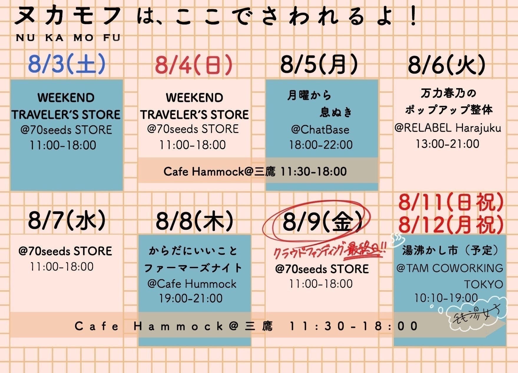 8月3日、4日と門前仲町にある70seeds STOREで開催されていた「WEEKEND TRAVELER'S STORE」にご来場のお客さまにヌカモフを体験していただきました!