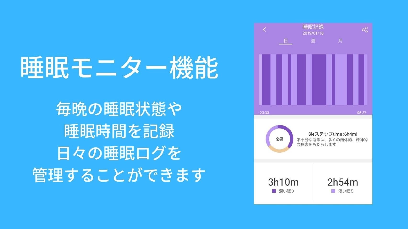 専用スマートフォンアプリ「Lenovo Life」をダウンロードし、スマホとBluetooth接続することで、計測した日々の睡眠の質や心拍数の記録を見ることができます。